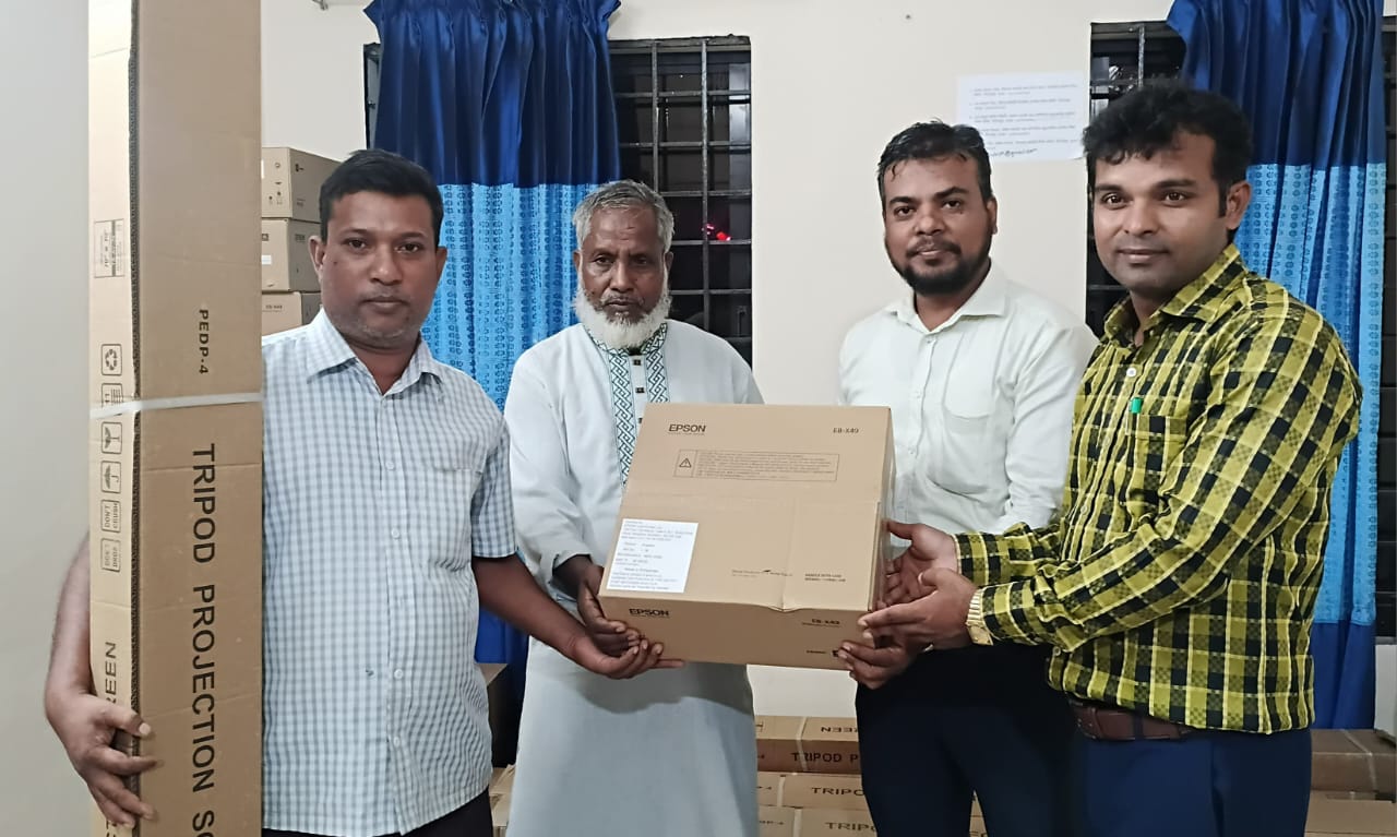 বাংলাদেশ প্রাথমিক শিক্ষা অধিদপ্তর কর্তৃক মিঠাপুকুর উপজেলায় ১শ ১টি সরকারি প্রাথমিক বিদ্যালয়ের অনুকূলে দ্বিতীয় কিস্তির বরাদ্দকৃত মাল্টিমিডিয়া প্রজেক্টর ৩১ জুলাই ২০২৫ রংপুর জেলা প্রাথমিক শিক্ষা অফিস থেকে গ্রহন করে সদ্য যোগদানকৃত উপজেলা প্রাথমিক শিক্ষা অফিসার মোঃ জাকিরুল হাসান এঁর নির্দশনায় স্ব স্ব ক্লাস্টারের অফিসারের সহযোগিতায় বিদ্যালয়ের প্রধান শিক্ষকগণের মাঝে সুষ্ঠুভাবে বিতরণ করা হয়েছে। ছবিতে সহকারী শিক্ষা অফিসার মোরশেদুল কবীর ও ইয়াকুবুল আজাদ প্রধান শিক্ষকদের দেখা যাচ্ছে।