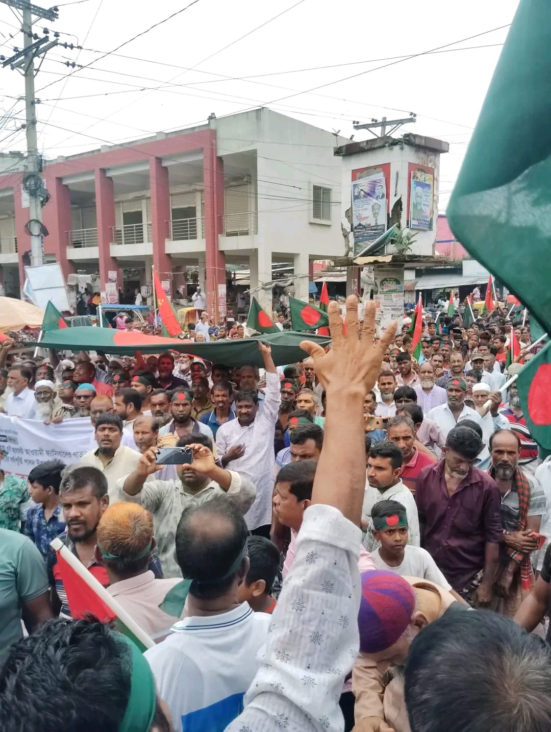 চাঁপাইনবাবগঞ্জের ভোলাহাট উপজেলা বিএনপি 'র আয়োজনে জুলাই আগস্ট অভ্যুত্থানের বিজয়ের বর্ষপূর্তি পালন উপলক্ষে বিজয় মিছিল অনুষ্ঠিত হয়েছে। মঙ্গলবার (৫ ই আগষ্ট) সকাল ১০ :৩০ ঘটিকায় ভোলাহাট কলেজ মোড় ফায়ার সার্ভিসের পার্শ্বে হতে কলেজ মোড় অভিমুখী হয়ে ভোলাহাট চত্বরে গিয়ে বিজয় মিছিলের সমাপ্তি ঘটে। এ সভায় সভাপতিত্ব করেন জাতীয়তাবাদী দল বিএনপি উপজেলা শাখার সভাপতি আলহাজ্ব মোঃ ইয়াজদানী আলীম আল -রাজী জর্জ। সভায় উপস্থিত ছিলেন চাঁপাইনবাবগঞ্জ জেলা বিএনপির সিনিয়র যুগ্ম আহ্বায়ক রফিকুল ইসলাম টিপু, সদস্য সচিব আলহাজ্ব রফিকুল ইসলাম রফিক চাইনীজ,প্রধান অতিথি হিসেবে উপস্থিত ছিলেন - ৪৪ চাঁপাইনবাবগঞ্জ - ২ (নাচোল, গোমস্তাপুর,ভোলাহাট) আসনের এমপি মনোনয়ন প্রত্যাশী মোঃ আঃ সালাম (তুহিন) সঞ্চালনায় মোঃ আঃ কাদের সাধারণ সম্পাদক ভোলাহাট উপজেলা বিএনপি, জেলা সদস্য মোঃ মোজাম্মেল হক (চুটু)বিশেষ অতিথি হিসেবে উপস্থিত ছিলেন মোঃ আব্দুস সোবহান মাস্টার সিনিয়র সহ-সভাপতি ভোলাহাট উপজেলা বিএনপি মোঃকরিম মাষ্টার সাংগঠনিক সম্পাদক ভোলাহাট উপজেলা বিএনপি ১-২-৩ ও৪ ইউনিয়ন সভাপতি সাধারণ সম্পাদক উপস্থিত ছিলেন। আরও উপস্থিত ছিলেন গোহালবাড়ী ইউনিয়নের ৫নং ওয়ার্ড বিএনপির সভাপতি মোঃ তাজউদ্দিন সাধারণ সম্পাদক মোঃ রুহুল আমিন দলদলী ইউনিয়ন বিএনপির সভাপতি মোঃ আবু মোতালেব, জামবাড়ীয়া ইউনিয়ন বিএনপির সাধারণ সম্পাদক মোঃ কামরুজ্জামান বাবুলসহ উপজেলা বিএনপি ও তার অংগসংগঠনের নেতাকর্মী ও সাধারণ ধানের শীষের ভোটারগণ উপস্থিত ছিলেন।