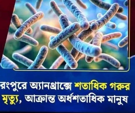 রংপুর জেলার পীরগাছা, কাউনিয়া, মিঠাপুকুর উপজেলার বিভিন্ন এলাকায় অ্যানথ্রাক্স (Anthrax) সংক্রমণ ছড়িয়ে পড়ার সংবাদে গরু বিক্রির পাশাপাশি গরুর মাংস বিক্রি কমেছে।জেলা প্রাণিসম্পদ অধিদপ্তর ও স্বাস্থ্য অধিদপ্তর থেকে এটি একটি গুরুতর জনস্বাস্থ্য সমস্যা এবং সকলকে সতর্ক হওয়া জন্য আহবান জানিয়েছে।জানাগেছে -অ্যানথ্রাক্স একটি ব্যাকটেরিয়াজনিত সংক্রমণ যা মূলত গবাদিপশু যেমন গরু, ছাগল, মহিষ, ভেড়া ইত্যাদিতে হয়। সংক্রামিত প্রাণীর রক্ত, মাংস, চামড়া বা মৃতদেহের সংস্পর্শে এসে মানুষের শরীরে জীবাণুটি প্রবেশ করতে পারে।সংক্রামিত পশুর মাংস, রক্ত, চামড়া বা হাড় স্পর্শ করার মাধ্যমে এবং অসুস্থ পশু জবাই করার সময় ক্ষত বা কাটা জায়গা দিয়ে জীবাণু শরীরে ঢুকে যেতে পারে।কখনও কখনও আধা সেদ্ধ বা কাঁচা মাংস খাওয়ার মাধ্যমেও সংক্রমণ ঘটতে পারে। মানুষের মধ্যে অ্যানথ্রাক্স সাধারণত তিনভাবে সংক্রমণ ঘটায়—ত্বক, ফুসফুস ও অন্ত্রে। সবচেয়ে বেশি দেখা যায় ত্বকের অ্যানথ্রাক্স। এতে প্রথমে ছোট ফোস্কা হয়, পরে তা কালো ঘায়ে পরিণত হয়। অন্য উপসর্গগুলোর মধ্যে রয়েছে—জ্বর ও দুর্বলতা শরীর ব্যথা ও মাথাব্যথা ঘা বা ফোস্কার চারপাশে ফোলা ও গলা বা বুকে ব্যথা।