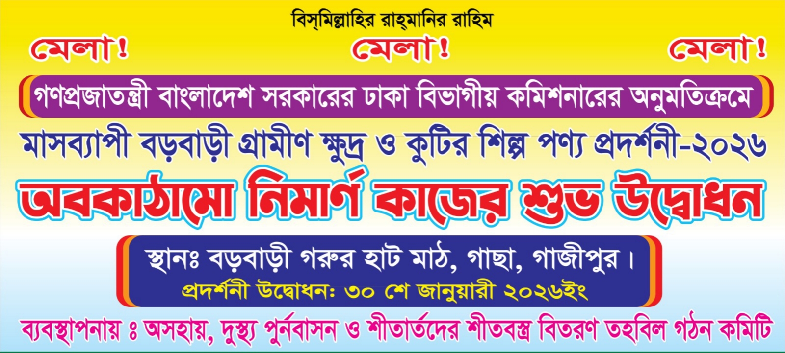 আগামী ৩০শে জানুয়ারি টঙ্গীতে শুরু হচ্ছে বিশাল গ্রামীণ ক্ষুদ্র কুটির শিল্প মেলা