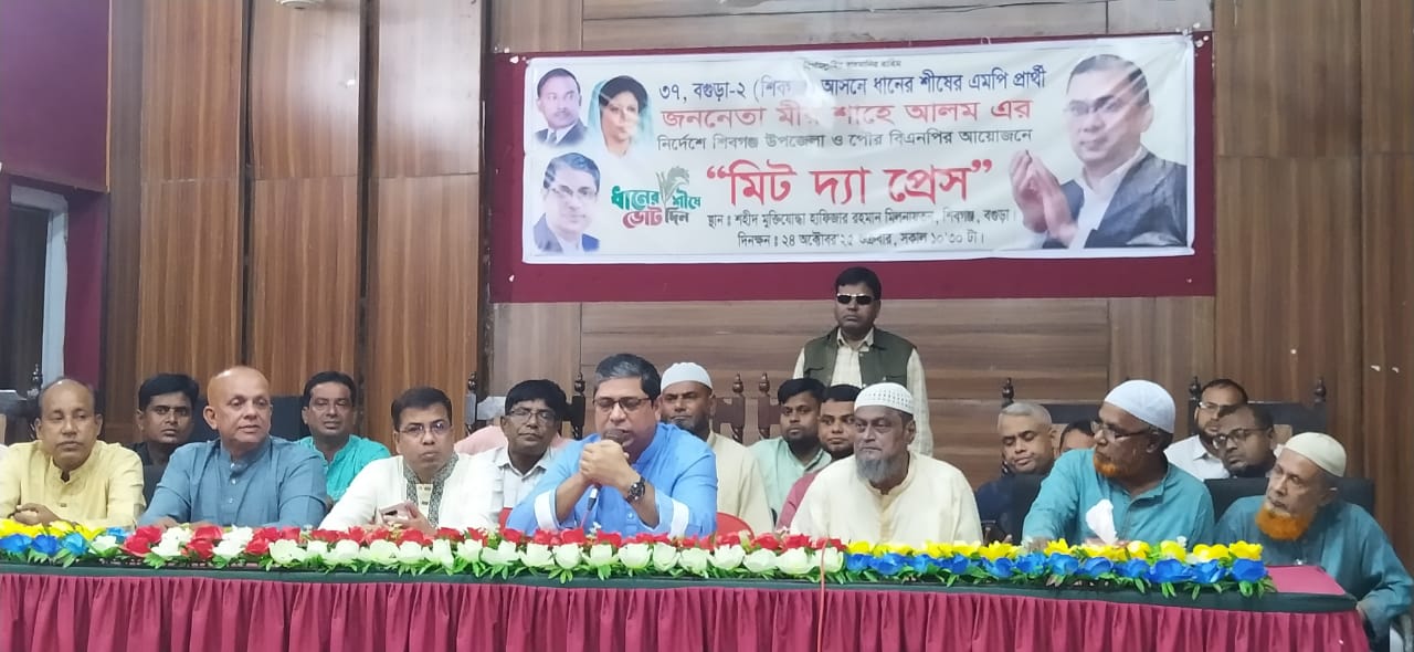 শিবগঞ্জ (বগুড়া) প্রতিনিধি: বগুড়া-২ (শিবগঞ্জ) আসনে ধানের শীষের এমপি প্রার্থী ও উপজেলা বিএনপির সভাপতি অধ্যক্ষ মীর শাহে আলম স্থানীয় সাংবাদিকদের সঙ্গে এক সৌহার্দ্যপূর্ণ মিট দ্যা প্রেস অনুষ্ঠানে মিলিত হয়েছেন। শুক্রবার