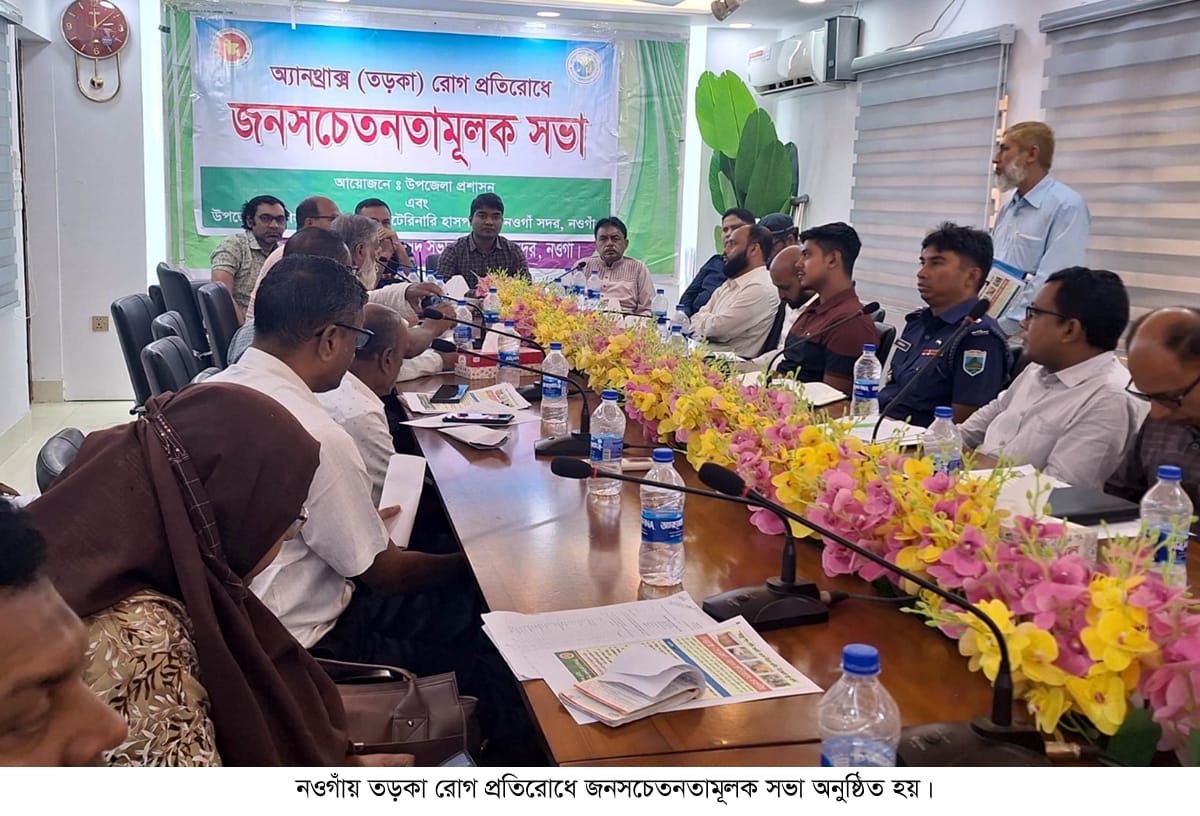 নওগাঁ প্রতিনিধি: নওগাঁয় অ্যানথ্রাক্স(তড়কা) রোগ প্রতিরোধে এক জনসচেনতামূলক সভা অনুষ্ঠিত হয়েছে। বৃহস্পতিবার সদর উপজেলা পরিষদ সভা কক্ষে সদর উপজেলা প্রশাসন ও উপজেলা প্রাণিসম্পদ দপ্তরের আয়োজনে এই সভা অনুষ্ঠিত হয়। সভায়